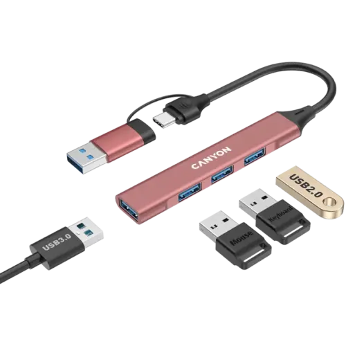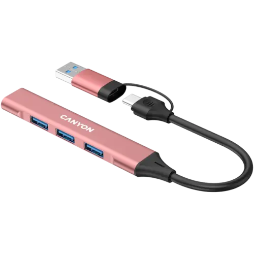 Търговско име : CANYON hub DS-02 4in1 USB-A/C Pink