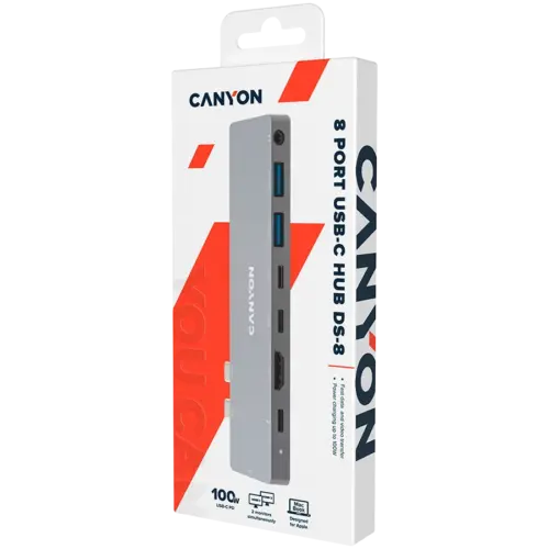 USB хъб CANYON hub DS-8 8in1 Thunderbolt 4k Space Grey