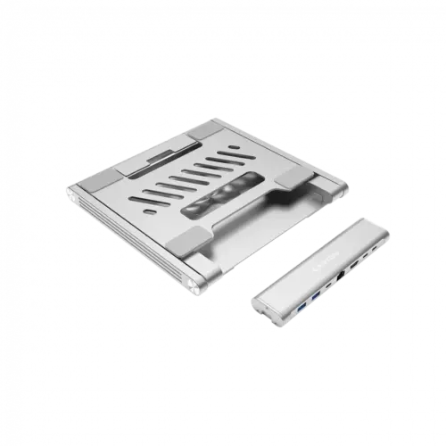 Canyon Laptop stands with hub, TYPE C F to HDMI2.0+2USB3.0+USBC3.0+RJ45+PD, TYEP C TO C cable 1m white with Emarker: HUSB332A, Material: Aluminum case+ABS+PS, Size: 245x240x27.2+/-0.3mm, Weight:1304g