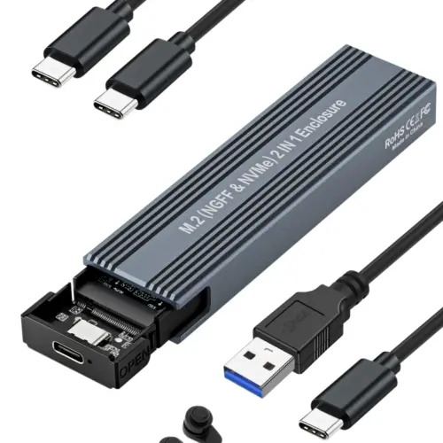 поддържа M.2 (NVMe) M-key & M+B-keyХ-КА 3 : кабел – TYPE C/A – TYPE C (10 Gbps)Х-КА 4 : 4 TB Max CapacityХ-КА 5 : Transfer Rate – 10GbpsРАЗМЕРИ : 102 x 28 x 12 mmЦВЯТ : СивГАРАНЦИЯ : 12 месецаБАРКОД EAN-13 : 4895182256514