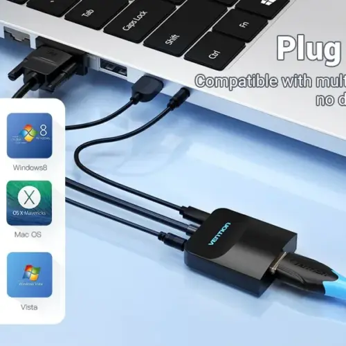 Vention адаптер Adapter VGA to HDMI with sound – Active converter with AUX-in and Micro USB power – ACNBB