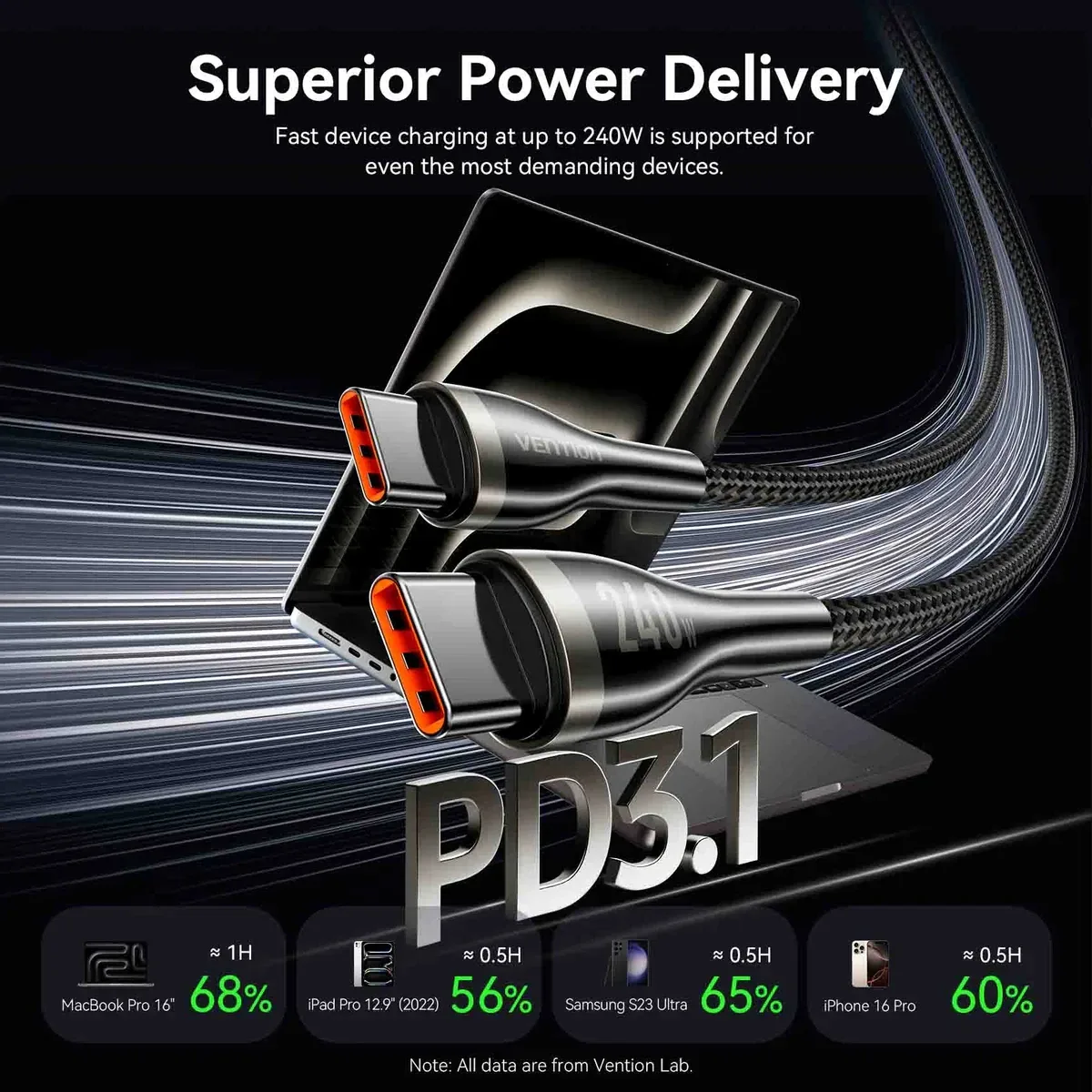 Vention кабел Cable – USB2.0 Type-C to Type-C – 5A Fast Charging, 240W, PD3.1, 1.2m – CTYBAV