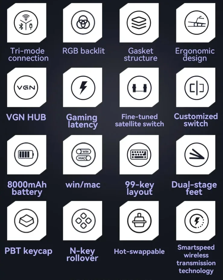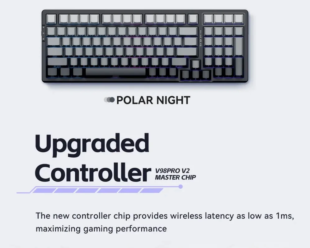 VGN безжична геймърска механична клавиатура Wireless Gaming Mechanical Keyboard – V98 PRO V2 Limited Black Glow – Kailh Arctic Switches, BT5.0, 2.4G, RGB