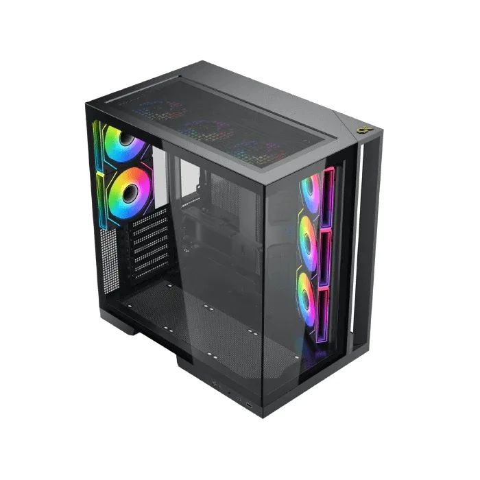 Rear: 120 mm x 2БРОЙ 3.5″ ГНЕЗДА : 2БРОЙ 2.5″ SSD ГНЕЗДА : 2РАЗШИРИТЕЛНИ СЛОТОВЕ : 7МАКС. РАЗМЕР ОХЛАДИТЕЛ : 165 mmМАКС. РАЗМЕР ВИДЕОКАРТА : 410 mmЦВЯТ : ЧеренДОПЪЛНИТЕЛНИ : 2 Tempered Glass Panel Design