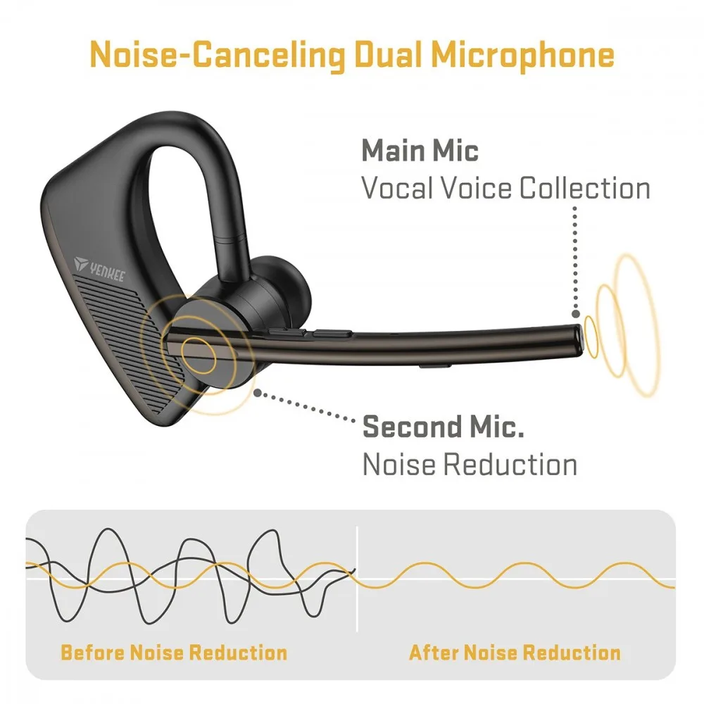 The YHF 20BK wireless headset features an advanced dual-microphone system with noise reduction for natural sound and Bluetooth v5.2 for reliable and stable connectivity. The high-performance Qualcomm 3040 single-chip solution ensures high audio performance combined with low power consumption. The reversible microphone (270° and 180° rotation on two axes) allows you to wear the headphones on either the right or left ear and position the microphone at the perfect angle for optimal sound capture. The headset is equipped with multi-function buttons for quick mute and volume adjustment, providing user-friendly control over phone calls, music, or voice assistants.