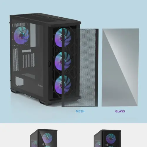 Tempered Glass Front Panel and Full Mesh Front Panel both included